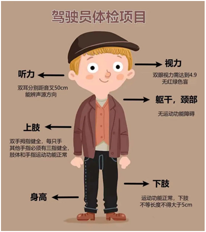 申请中大型车辆身高要求在150cm以上,小型汽车驾驶证没有这个要求,一般去体检这一项都能合格,